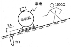 单选题 对于工频电流人的感知电流为0.5~1mA、摆脱电流为5~10mA、室颤电流约为50mA。某事故现场如下图所示,电动机接地装置的接地电阻为2Ω;该电动机漏电,流过其接地装置电流为5A;地面十分潮湿。如果电阻1000Ω的人站在地面接触该电动机,最有可能发生的情况是()。