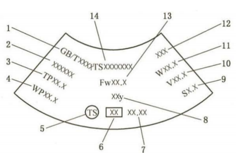 查看试题 - 《气瓶安全技术规程》(TSG23)规定,气瓶标志应当采用机械或者激光方法打印、蚀刻、镂刻等能够形成永久性标记的方式。下图气瓶制造钢印标志位置及内容中,表示充装气体名称或者化学分子式的是()。