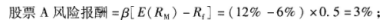 股票B的风险报酬=β[E(RM)-Rf]=(12%-6%)X2=12%。