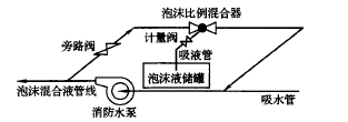 答案解析: 如下图所示,泡沫液的投加点应在消防水泵的吸水管上。