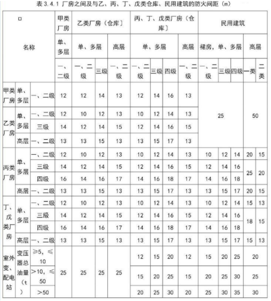 A.单层煤粉厂房与建筑高度为20m的住宅建筑的距离为25m