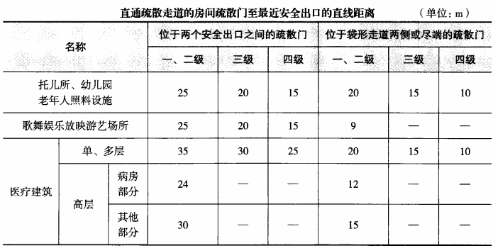 答案解析: 本题考查的知识点是歌舞娱乐放映游艺场所疏散距离的要求。根据《建筑设计防火规范》第5.5.17条规定,公共建筑的安全疏散距离应符合下列规定:直通疏散走道的房间疏散门至最近安全出口的直线距离不应大于下表的规定。