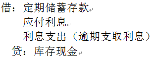 答案解析: 定期储蓄存款逾期支取时,会计分录为: