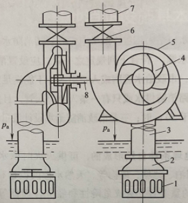 答案解析: 图中数字所代表的具体含义如下 1-滤网; 2-底阀; 3-吸水管; 4-叶轮; 5-泵壳; 6-调节阀; 7-出水管; 8-泵轴。