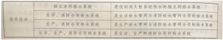 答案解析: 给水系统按用途分类可分为以下几类(见下表):