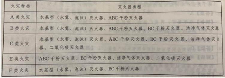 答案解析: 火灾种类与灭火器类型对应情况见下表。