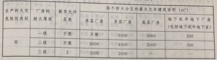 答案解析: 厂房的层数和每个防火分区的最大允许建筑面积见下表。