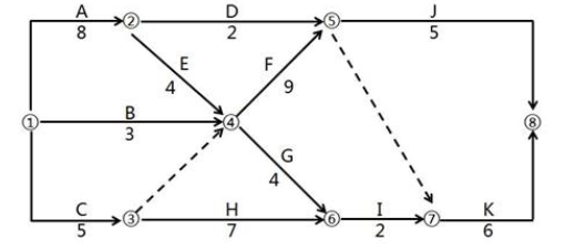 答案解析: I的最早开始时间=8(A)+4(E)+4(G)=16。