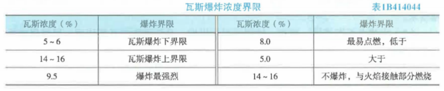 答案解析: 当坑道中的瓦斯浓度小于5% ,遇到火源时,瓦斯只是在火源附近燃烧而不会爆炸;瓦斯浓度在5%-6%到14%-16%时,遇到火源具有爆炸性;瓦斯浓度大于14%-16%时,一般不爆炸,但遇火能平静地燃烧,瓦斯浓度爆炸界限见表1B414044。
