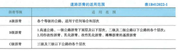 答案解析: 参见表lB412022-1。 本考点易在案例中出现。 考点来源:道路石油沥青