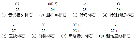 答案解析: 编号的分子表示标石的不同类别或同类标石的序号,如(1)、(2);分母表示一个编号单元内总标石编号;图(7)、(8)中分子和分母+1表示新增加的接头或直线光缆标石。 选项A为直线标石;选项B为障碍标石;选项C为转角标石;选项D为特殊预留标石。 本小题选B。