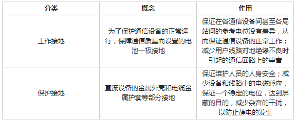 接地系统有交流工作接地、直流工作接地、保护接地和防雷接地等。现在一般使用联合接地的方式:联合接地系统是指使局(站)内各建筑物的基础接地体和其它专设接地体相互连通形成一个共用地网,并将电子设备的工作接地、保护接地、测量接地以及防雷接地等共用一组接地系统的接地方式。