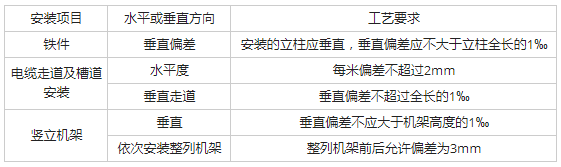答案解析: 铁件安装前,应检查材料质量。不得使用生锈、污渍、破损的材料。铁件安装或加固的位置应符合设计平面图的要求。安装的立柱应垂直,垂直偏差应不大于立柱全长的1‰;铁架上梁、连固铁应平直无明显弯曲;电缆支架应端正,距离均匀;列间撑铁应在一条直线上,铁件对墙加固处应符合设计图要求;吊挂安装应牢固、垂直,一列有多个吊挂时,吊挂应在一条直线上。 本小题选B。
