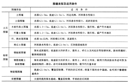 答案解析: 各类围堰适用条件见下表。