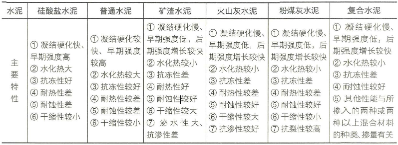 答案解析: 六大常用水泥的主要特性