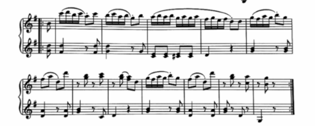 (4)第1—4小节与第5—8小节之间使用了哪一种旋律发展手法?