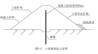 某小型水库枢纽工程由均质土坝、溢洪道、左岸输水涵和右岸输水涵等建筑物组成,该水库工程进行除险加固的主要内容包括:坝体混凝土防渗墙、坝基帷幕灌浆、坝体下游侧加高培厚;拆除重建左、右岸输水涵进口及出口等。混凝土防渗墙位于坝体中部,厚60cm;帷幕位于防渗墙底部。土坝横剖面示意图如图所示。