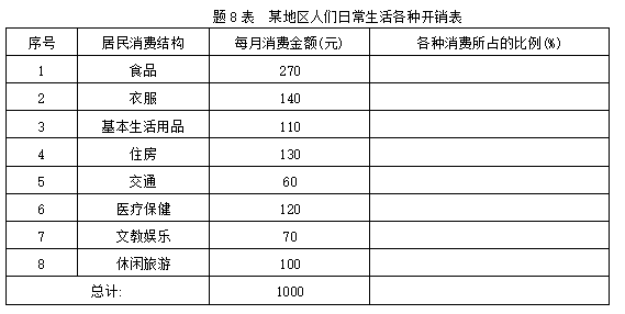 题8表是关于某地区人们日常生活各种消费的种类情况。