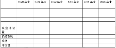 (1)计算该项目2020~2025年末的相关现金净流量和净现值(计算过程和结果填入下方表格中)
