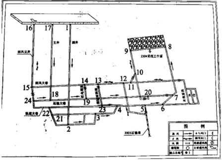 图1矿井东翼通风系统示意图