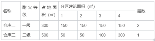 注:1.仓库二为多层仓库,一层分为分区和分区2,二层为分区3和分区4,分区之间采用防火墙分隔。