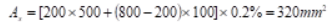 单选题 1017、某T形梁截面尺寸如图所示,当按最小配筋率置配纵向受力钢筋As时,设截面有效高度ho=465mm,则As为()。