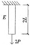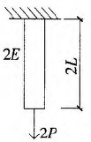 答案解析: 杆的伸长量△L=NL/EA,而D图中轴力大,N-2P,而弹性模量E最小,故D图伸长量最大。