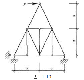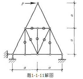 答案解析: 首先,由零杆判别法可知,3根竖腹杆在竖直方向的节点上都没有力所以均为零杆。其次,由于此结构可看成是对称结构受反对称荷载作用,内力是反对称的,故对称轴上中间2根对称的横杆必为零杆。最后再由零杆判别法可知,中间2根斜腹杆也是零杆。