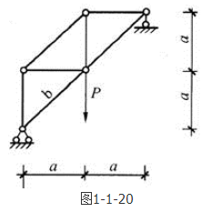 答案解析: 结构没有受到水平方向的外力,因此左下端支座的水平链杆受力为0,然后取左下端支座为节点,列出水平方向的静力平衡方程,可得Nb=0,杆b为零杆。