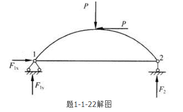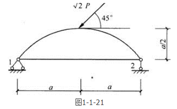 答案解析: 把P荷载分解成一个水平力和一个铅垂力,如右图所示。利用静力平衡条件,首先整体分析求支座反力,对支座1取矩,∑M1=0,即F2×2a+P×=P×a,F2=。
