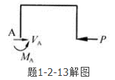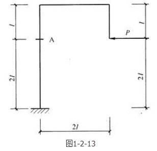 答案解析: 如图1 -2-55所示,用截面法将钢架从A点截开,取上半部,并画出受力图。由平衡方程由于荷载作用线延长线经过A点,因此MA=0。