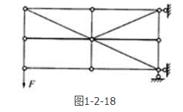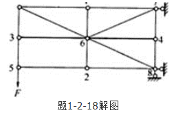 答案解析: 如解图所示,首先根据1、2、3、4、5各节点,由零杆判别法:①两杆节点A上无荷载作用时,则该两杆的内力都等于零,=0;②三杆节点B上无荷载作用时,如果其中有两杆在一直线上,则另一杆必为零杆,N3=0。可知1-6、2-6、3-6、4-6和5-2这五根杆都是零杆。再由2点可知2-8杆是零杆,由6点可知6-7杆是零杆。最后由节点7可知7-4是零杆,由4点可知4-8是零杆。
