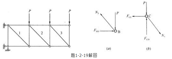 单选题 图1-2-19所示桁架中斜杆1、2和3受何力作用?()。