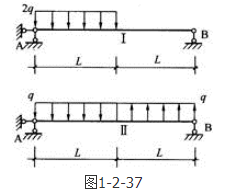 答案解析: 先求Ⅰ点支反力,设支反力方向向上,对A点取矩,由平衡方程,即。可得,则;由静力平衡求Ⅱ点支座反力,设支反力方向向上由,即,得,则。也可将图1的荷载分别按照正对称和反对称分解,易得正对称情况下的跨中剪力为0,而反对称就是图2的情况。所以VⅠ=VⅡ。