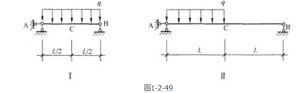 答案解析: 图Ⅰ为受均布力作用的简支梁,最大弯矩。对图Ⅱ可以先由整体平衡∑MA=0:,求出右边支座反力FB=。由直接法求弯矩,可得=。