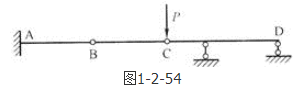 答案解析: 图示为多跨静定梁的分析,可先分析附属结构,不影响基本结构。分析BC杆的受力平衡,可知BC杆受力为零。从而可知AB杆受力也是零,只有CD杆受力。