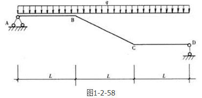 答案解析: 考虑整体平衡,先求支座反力,设右边支座反力FB向上。根据平衡方程ΣMA=0,求得FB,根据ΣFY=0,求得左边支座反力FA,然后把BC段截开,可以求出BC段中的内力有轴力、剪力和弯矩。