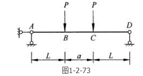 答案解析: 由水平方向受力平衡可得,A支座的水平反力为零,由对称性可知A、D支座反力均为P,截取BC段截面,由截面法得BC段剪力为零,只存在弯矩。
