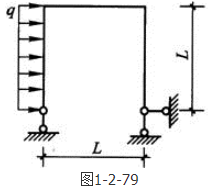 答案解析: 右端水平反力等于qL,左上节点弯矩等于均布荷载对该点取矩,右上节点弯矩等于水平反力取该节点取矩。右边支杆不受均布力,所以弯矩不应为弧形,由此可得满足要求的图形为B项。