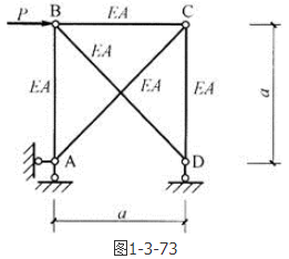 答案解析: 由受力分析可知,NBD=0,NBA=0,NBC=NCD=﹣P,NAC=P。根据单位力法位移计算公式△=可知,AC杆对位位移贡献最大。
