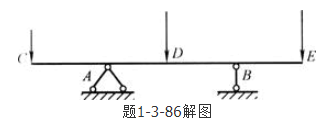 答案解析: 解法一:弯矩图由三个三角形组成,可以判断它是由三个集中力作用于双悬臂简支梁引起的,如图所示。其中一个集中力作用于跨中,另两个集中力分别作用于悬臂端。