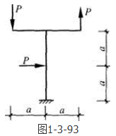 答案解析: 首先进行整体受力分析,对固定端求弯矩:M=P×a+P×a-P×a=Pa(右侧受拉);求水平荷载以上横杆以下的竖杆部分的弯矩:M=P×a+P×a=2Pa(右侧受拉);求横杆右侧部分的弯矩:M=P×a=Pa(下侧受拉);求横杆左侧部分的弯矩:M=P×a=Pa(上侧受拉),因此选C项。