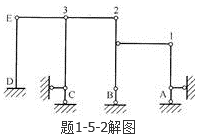 答案解析: 如解图所示,如果在B点加一个水平支座链杆,则可以逐一去掉二元体1、2、3,得到一个静定悬臂梁DE。可惜B点少一个水平链杆约束,因此是几何可变体系。