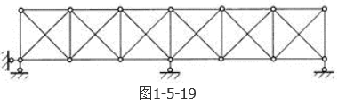 答案解析: 去掉6根斜杆,并去掉中间下面的支座链杆,则原结构成为一个标准的由三角形组成的、简支的静定桁架,故有7个多余约束。