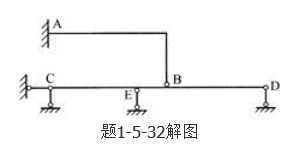 答案解析: 去掉一个中间铰链B,再去掉一个链杆支座E,相当于去掉3个约束,便可得到一个静定的悬臂刚架AB和一个静定的简支梁CD,此结构为静定结构,所以结构为三次超静定结构。