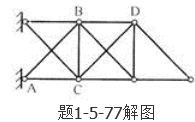 答案解析: 超静定次数即多余约束(多余反力)的数目。确定方法是去掉结构的多余约束,使原结构变成一个静定的基本结构,则所去掉的约束(联系)的数目即为结构的超静定次数。本题中,如解图所示,去掉AB、CD两杆,相当于去掉两个联系,根据二元体原则,可得到一个完全由三角形组成的标准无多余约束的静定桁架,因此超静定次数为2次。
