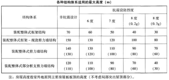 D.非抗震设计下的装配整体式框架结构适用的最大高度为70m